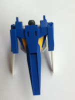 Well I am satisfied with the kit but I can't give it a 10/10 here now can I? Lets start from top to bottom. To start off the head is small. It looks weird because of its chest and arms. Very awkward I imagine. Now to the shoulders I would have to say the shoulder pieces would need better proportions. It isn't that accurate and it looks almost similar to the AG version but more detail. Just saying it should be bigger and it should be a little different. In the show he had a bigger Double Bullet shoulder which had missiles shooting out and etc.. just saying my opinion here lol. It is a HG though so for a HG I give 1 thumb up. No just kidding I'll give the shoulder 2 lol. To move to its chest and waist. Its chest is basically medium sized and the waist is small as well. Yeah I why don't we make the head and waist strangely small and weird and call it HG? lol I don't know really when I look at it I can tell the proportions need adjusting. When you look slowly from top to bottom you go down and it looks like a triangle. Then you go to its torso and you go whoa.... it got bigger. Gee I figure since its trying to give off a humanoid shape the waist would be complementary with the torso. Speaking of torso yes this middle area of the kit is frustrating a little. Its off slightly to be fair and this is also the cause as to why the flight mode sucks. Then we go to its long legs. The proportion on this is completely off. It looks like the upper body is small and short then when you go to the lower body you have these long legs. Its like combining a midget with long legs. You get a small upper body and a long lower body. Its weird put it simply.